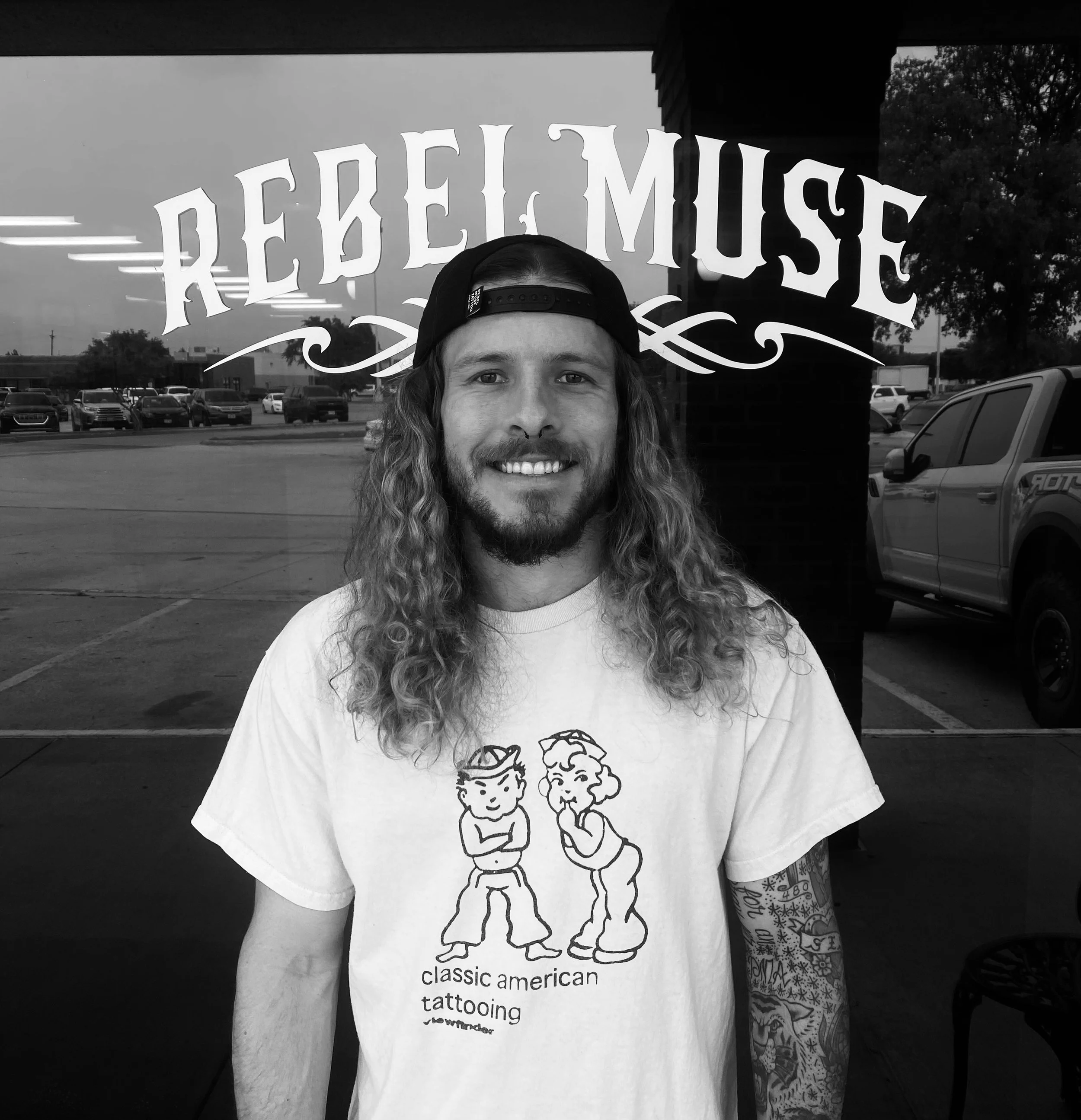 My name is Devon Rowe. I am an artist, creator, athlete, and musician. I am currently in my second year of tattooing and a resident artist at Rebel Muse, Lewisville. I have many interests and hobbies outside of tattooing. Some of which include; skateboarding, wakeboarding and surfing, snowboarding, making music, rock climbing, playing chess, spending time outside, hanging out with family, and a number of other things. I began my tattoo journey by starting my apprenticeship at the beginning of 2020. Though it wasn’t easy, making the decision to become a tattoo artist was has been the greatest achievement of my life. I enjoy doing bold traditional and neotraditional tattoos in black and gray or color, micro realism, and fine line tattoos with the interest to grow my skills in realism, Japanese traditional, and many other styles. My goal is always to give you a one of a kind client experience coupled with the beautiful life long investment that you came to me for. Whether your idea or mine, let’s turn your body art dreams into a reality!